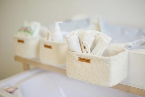 Les paniers suspendus sont parfaits pour ranger, par exemple, les couches ou les linges de toilette, mais aussi les jouets.