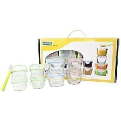 Frischhaltedose aus Glas für Baby (4stkx150ml; 2stkx210ml; 2stkx165ml) + 1 Silikonlöffel. Ohne BPA, Ohne Phtalates, Ohne Dioxin, Melanin