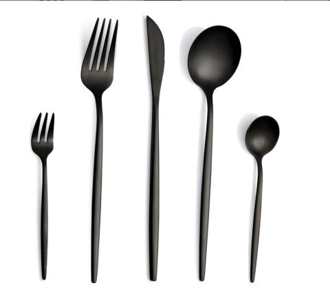 Set de couverts, Set de couverts pour 6 personnes, 30 pièces Set de couverts noir mat, Set de couverts en acier inoxydable, Couverts avec couteau, fourchette, cuillère, Lavable en machine