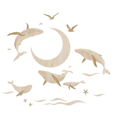 Craquez pour ce joli set de décoration en bois Baleines de la marque Zakuw. Cet ensemble moderne et poétique va venir décorer la chambre de votre enfant. Plu...
