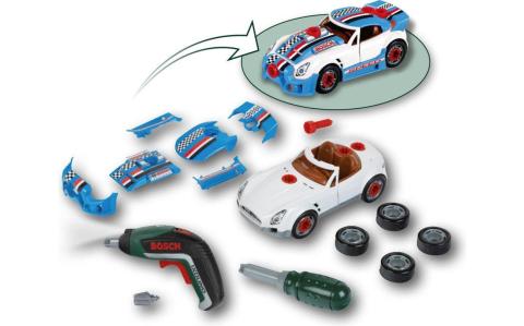 Coffret Bosch Car Tuning avec voiture, pneus, autocollants et tournevis Ixolino. Stimule motricité et imagination. Commandez maintenant chez DreamLand.