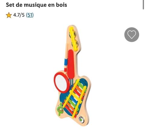 Ce produit est extrait d'une liste de cadeaux (Anniversaire, Noël, ...) déposée sur Kadolog. Kadolog permet de créer des listes de cadeaux (Anniversaire, Noël, ...) en toute liberté. Il est possible d'ajouter toutes vos envies cadeaux et de recevoir les dons directement sur votre compte. Avec les dons reçus, vous êtes alors libre d'aller acheter vos produits (comme ce 'Set de musique en bois acheter en ligne sur Lidl.be ') où et quand vous le souhaitez.