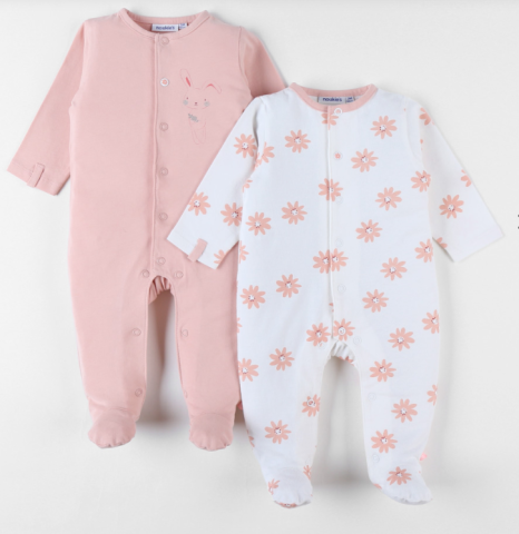 Set de 2 pyjamas 1 pièce, écru/blush | Noukie's (taille 3 mois)