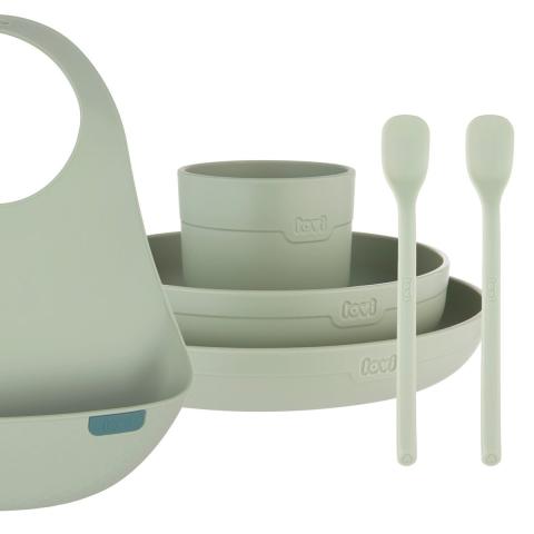Faites de chaque repas un moment spécial avec cet ensemble complet de boissons et d'aliments pour bébés. Comprend une assiette, un bol, une tasse ouverte, des cuillères et un bavoir en silicone pour un confort optimal.