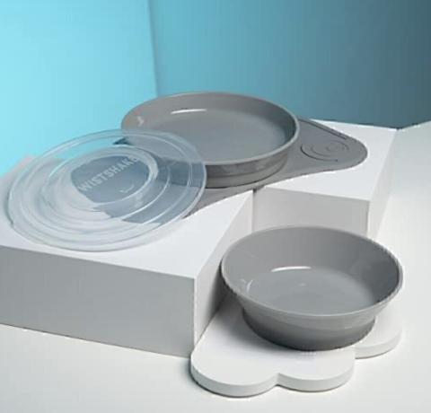 Twistshake Set De Vaisselle Bébé Mini + Bol | Assiette Ventouse + Set De Table (31x17cm) + Bol | Sans BPA | Assiette D'apprentissage De L'alimentation | Gris
