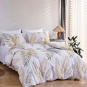Set Housse de Couette 220x240 cm Motif Feuilles Tropicales Dorées Botanique 2 Personnes et 2 x Taies d'oreiller 65x65 cm 100% Microfibre Parure de Linge de Lit avec Fermeture Éclair, Or Blanc : Amazon.fr: Cuisine et Maison