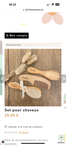 Ce produit est extrait d'une liste de naissance déposée sur Kadolog. Kadolog permet de créer des listes de naissance en toute liberté. Il est possible d'ajouter toutes vos envies cadeaux et de recevoir les dons directement sur votre compte. Avec les dons reçus, vous êtes alors libre d'aller acheter vos produits (comme ce 'Set pour cheveux ') où et quand vous le souhaitez.