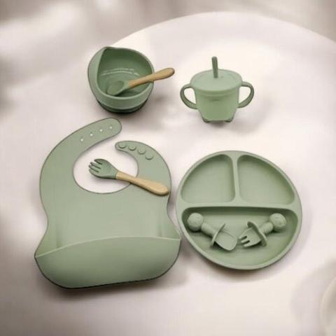 Découvrez notre set repas bébé 8 pièces en silicone sans BPA.