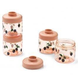 De set van 4 stapelbare Dominique snackboxen van Liewood biedt een slimme en praktische oplossing om babyvoeding en snacks te bewaren en te vervoeren.
