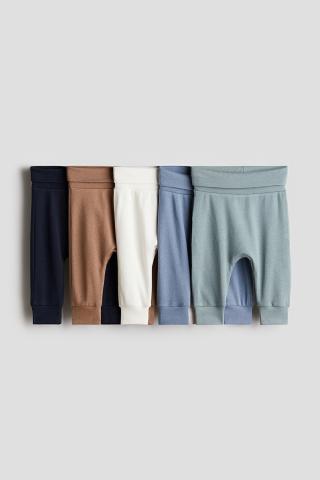 Broeken van superzacht katoentricot. Het model heeft een omslagboord in de taille en een boord onder aan de pijpen. Wordt verkocht als set.