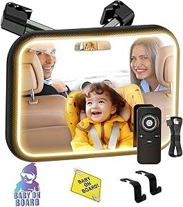 SHEGZHUC Miroir de voiture pour bébé - Avec lumière à 360° - Avec télécommande - Avec clip en métal - Équipement de premier choix pour nouveau-né - 2 autocollants Baby on Board et 2 crochets pour : Amazon.com.be: Bébé et Puériculture