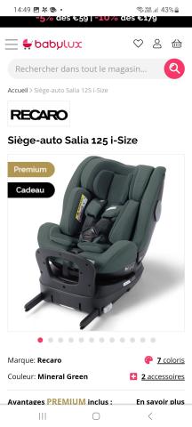 Ce produit est extrait d'une liste de naissance déposée sur Kadolog. Kadolog permet de créer des listes de naissance en toute liberté. Il est possible d'ajouter toutes vos envies cadeaux et de recevoir les dons directement sur votre compte. Avec les dons reçus, vous êtes alors libre d'aller acheter vos produits (comme ce 'Siege auto recaro ') où et quand vous le souhaitez.