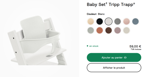 en toute liberté. Il est possible d'ajouter toutes vos envies cadeaux et de recevoir les dons directement sur votre compte. Avec les dons reçus, vous êtes alors libre d'aller acheter vos produits (comme ce 'Siège pour chaise haute Tripp trapp