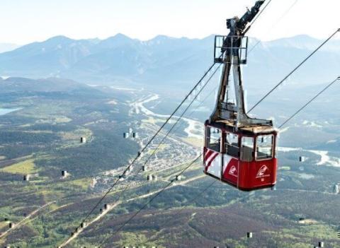 On rêve de s’envoyer en l’air ! Le skyTram dans la ville de Jasper nous amènera en quelques minutes à 2227 mètres d’altitude, nous permettant d’admirer l’immensité de la vallée glacière, les nombreux lacs turquoise, le Mont Robson (sommet le plus haut des Rocheuses), la rivière Athabasca, la ville de Jasper,... de quoi s'en mettre plein les yeux ! On vous enverra une photo !