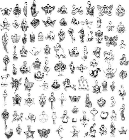 Skyzone Breloques de fabrication de bijoux, 100 pendentifs en métal argenté rétro mélangés pour bracelet, collier, boucles d'oreilles bricolage, 8~30 mm, Métal, Non applicable. : Amazon.com.be: Loisirs créatifs