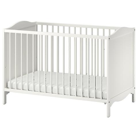 SMÅGÖRA Lit bébé, blanc, 60x120 cm. Avec son design intemporel, ses bords biseautés et ses angles arrondis, ce produit est tout aussi sûr que nos autres lits bébé, et plus doux pour votre porte-monnaie.