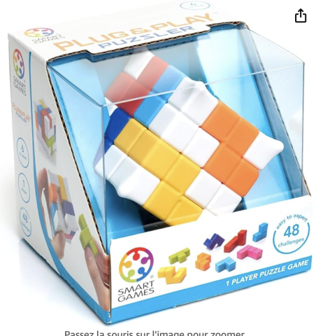 Ce produit est extrait d'une liste de cadeaux (Anniversaire, Noël, ...) déposée sur Kadolog. Kadolog permet de créer des listes de cadeaux (Anniversaire, Noël, ...) en toute liberté. Il est possible d'ajouter toutes vos envies cadeaux et de recevoir les dons directement sur votre compte. Avec les dons reçus, vous êtes alors libre d'aller acheter vos produits (comme ce 'SmartGames - Plug & Play Puzzle ') où et quand vous le souhaitez.