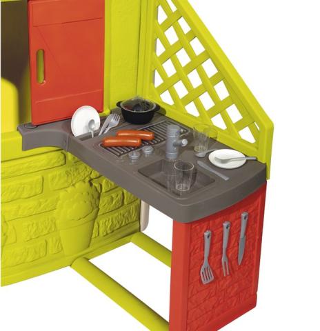 Les enfants vont encore plus s'amuser avec leur maisonette de Smoby avec cette extension cuisine. Cuire les saucisses sur le grill, puis les déguster ensemble... Savoureux ! Qui fait la vaisselle ? :)