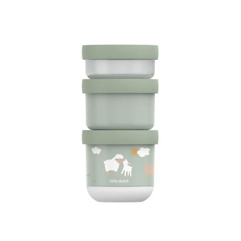 Des collations à emporter ? Tout rentre dans cette boîte empilable joyeuse. La boîte à collations empilable en 3 pièces avec l'imprimé ludique Little Farm de Little Dutch est parfaite pour les déplacements.