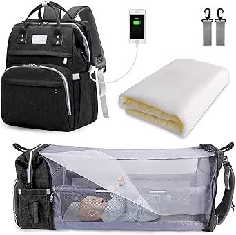 SNDMOR Sac à Langer pour Bébé Sac à Dos, Sacs à Langer Grande Capacité, Sac à Langer de Voyage Portable Avec Lit Pliable, Sac à Dos pour Lit Bébé (Noir) : Amazon.com.be: Bébé et Puériculture