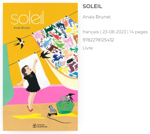 Un livre cartonné sublime et ludique, qui joue sur des éléments brillants en relief que l'enfant aura envie de suivre et de toucher du doigt (la rosée du matin, les rayons du soleil, les ombres, les reflets sur l'eau, le soleil couchant...). Après Neige et Orage, Anaïs Brunet nous donne à voir et à ressentir la course du soleil, tour à tour caressant, joueur, éblouissant ou magique, dans un décor très coloré, entre rêve et réalité.