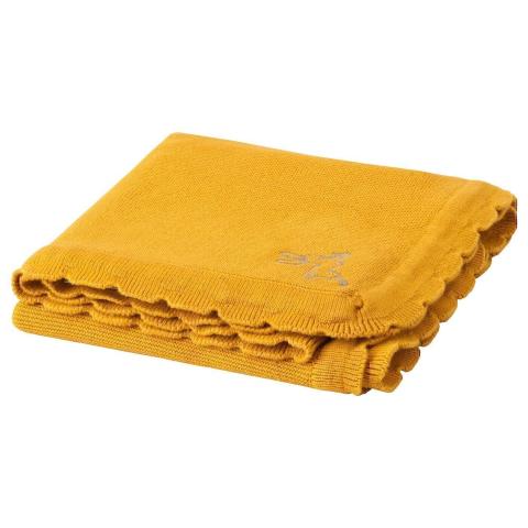 SOLGUL Couverture bébé, jaune foncé, 70x90 cm. Cette couverture est douce et agréable pour la peau. Elle est idéale pour couvrir votre bébé pendant sa sieste ! Entièrement fabriqué en coton produit durablement, un matériau doux et résistant qui s'adoucit à chaque lavage.