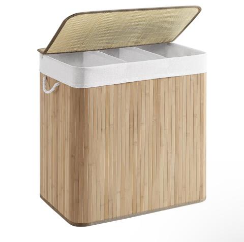 SONGMICS LCB091N01 Laundry Basket with 3 Compartments, 150 L Basket, Sorting Bin with Handles, Lid with Scratches, Foldable, Laundry, Household, Laundry Room, Wood Colour : Amazon.com.be: Home & Kitchen