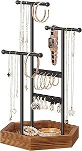 SONGMICS Porte-Bijoux, Présentoir pour Bijoux, en Métal et Bois, pour Colliers, Bracelets, Boucles d'oreilles, Clous d'oreilles, Bagues, Bonne Idée Cadeau, Noir JJS03CB : Amazon.com.be: Mode