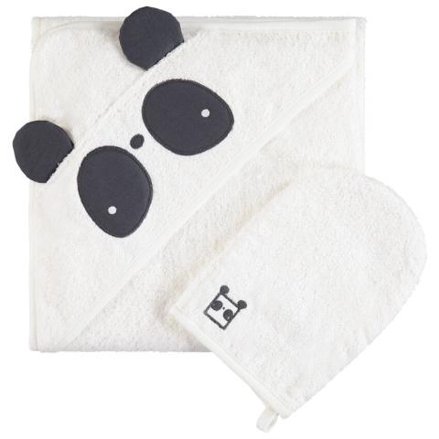 Sortie de bain bébé et gant de toilette Panda / Ethnic Animals