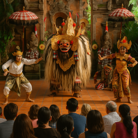 Plonge au cœur de la culture balinaise avec le spectaculaire Barong Dance de Batubulan — une explosion de couleurs, de musique et de légendes où dieux et démons s’affrontent dans une mise en scène magique, vibrante et pleine d’émotions