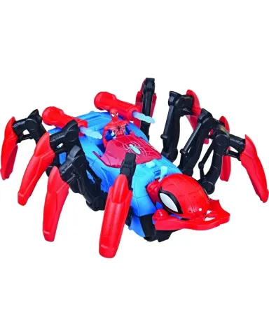 SPIDERMAN VEHICULE ARAIGNEE + FIG 10CM Pousse le véhicule Spider pour activer l'action rampante. D'une simple pression sur un bouton, l'araignée tire des pro...
