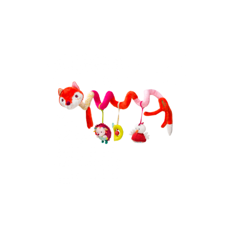 Alice la renarde s’enroule autour du parc, de la poussette ou du siège bébé et tend toutes ses activités pour éveiller bébé : miroir, pouet et petite clochette !