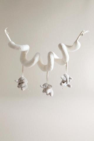 Spirale d’activités avec trois éléphants en peluche, chacun effectuant une action différente pour stimuler la curiosité de bébé. Ils sont similaires, mais avec des formes variées qui enrichissent l’expérience sensorielle. S’adapte facilement à la plupart des anses des porte-bébés et aux barres des chariots.