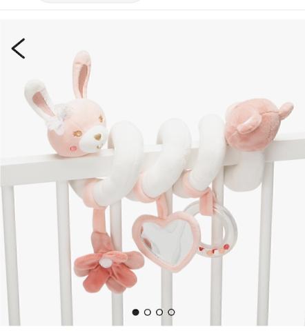 Une spirale d'activités qui participe à l'éveil de bébé. Sa forme lui permet de s'enrouler facilement autour d'un lit, d'un parc, d'une poussette ou encore d'un couffin. Spirale d'activités avec ours, lapin, fleurs, coeur, et anneau à billes.