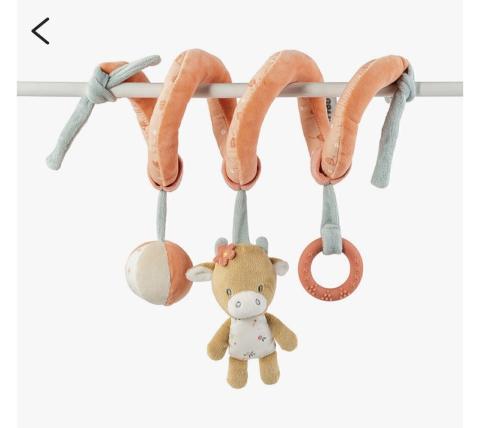 A attacher facilement au lit, au parc, sur la poussette ou le siège-auto, cette spirale proposera différents jouets qui participeront à l'éveil des sens tactiles et audios de votre poupette.