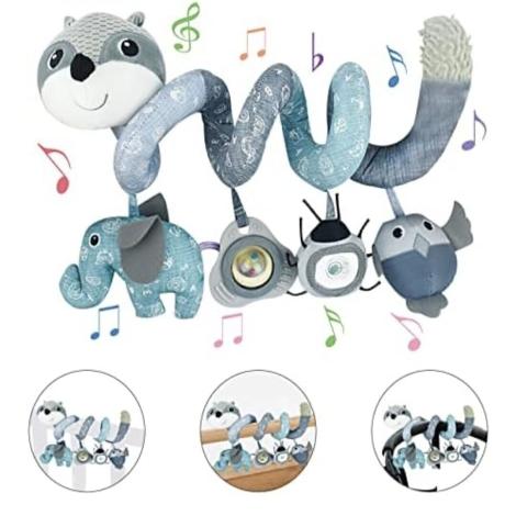 Coriver Hanging Spiral Toys for Car Seat, Crib and Moving Pram Baby Toys with Music Box, Mirror & Bells 0-6 Months, Pink/Grey (2.Grey) : Amazon.com.be: Toys