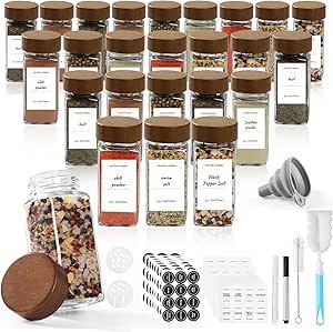 Square Glass and Wood Spice Jars, 24×120ml Spice Jar Set with Acacia Lid Spice Storage Containers, Label : Amazon.com.be: Home & Kitchen