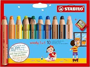 stabilo Crayon de Couleur STABILO woody 3in1 - Etui carton de 10 Crayons de Couleurs Enfant, Crayon Large à Mine XXL, Couleurs Assorties, Taille-crayon inclus : Amazon.com.be: Jouets