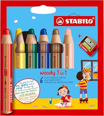STABILO - Etui de 6 Crayons aux talents multiples woody 3 en 1 + taille-crayons