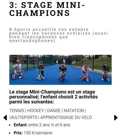 Le stage Mini-Champions est un stage personnalisé; l’enfant choisit 2 activités parmi les suivantes: