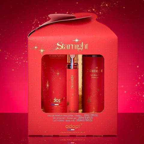 Découvrez et commandez en ligne le Coffret Eau de parfum 30 ml + Gel douche 250 ml + Lait corps 200 ml Starnight d’Adopt créé et fabriqué en France. Expédition sous 24h. Paiement sécurisé.