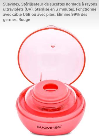 Stérilisateur portable Suavinex avec lumière UV. Élimine 99 % des germes et micro-organismes qui peuvent causer des troubles gastro-intestinaux chez l'enfant