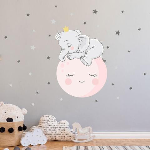 en toute liberté. Il est possible d'ajouter toutes vos envies cadeaux et de recevoir les dons directement sur votre compte. Avec les dons reçus, vous êtes alors libre d'aller acheter vos produits (comme ce 'Stickers - Éléphanteau assis sur la lune 30 étoiles - Bebeboutik