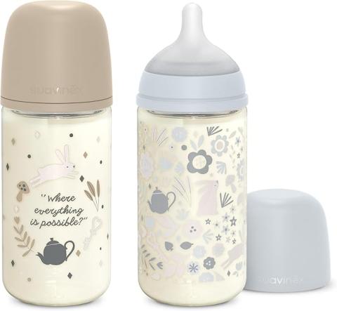 Suavinex, Pack 240 ml Glass Bottles with Symmetrical SX Pro Silicone Teat, Anticolic, Feeding Bottle with Medium Flow Teat (M), For Babies + 3 Months, Wonderland Blue, Beige : Amazon.com.be: Baby Products