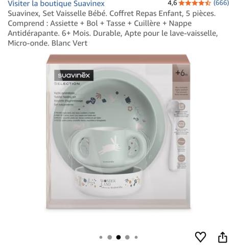 en toute liberté. Il est possible d'ajouter toutes vos envies cadeaux et de recevoir les dons directement sur votre compte. Avec les dons reçus, vous êtes alors libre d'aller acheter vos produits (comme ce 'Suavinex, Set Vaisselle Bébé.