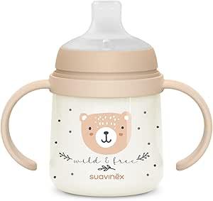 Suavinex, Tasse Apprentissage Bébé, Biberon avec Poignée, Brillent dans le Noir, Gobelet avec Bec Anti-fuites en Silicone, avec Valve Anti-Colique, pour Bébés +6 Mois, Idéal Nuit, 150 ml, Beige : Amazon.fr: Bébé et Puériculture