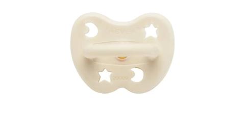 Sucette physiologique en caoutchouc naturel pour les bébés de 0 à 3 mois, de coloris blanc lait.