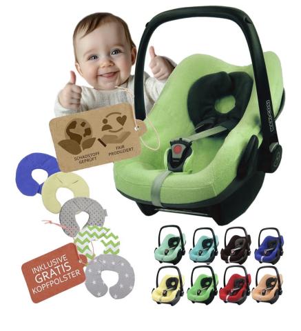 Housse d'été en tissu éponge - Housse pour coque bébé - Siège auto compatible avec Maxi Cosi Pebble et Pebble Plus, avec repose-tête gratuit (vert clair)