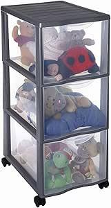 SUNDIS Orgamix, tour de rangement en plastique gris avec roues, 3 grands tiroirs transparents format papier A4, hauteur 63,5 cm, se déplace facilement, idéale rangement bureau, cours, documents : Amazon.com.be: Cuisine et maison