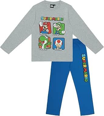 Super Mario Pyjama Manches Longues | 100% Coton | Garçons | Motifs Mario, Luigi, Yoshi, Toad, seize if grey, 128 : Amazon.com.be: Mode